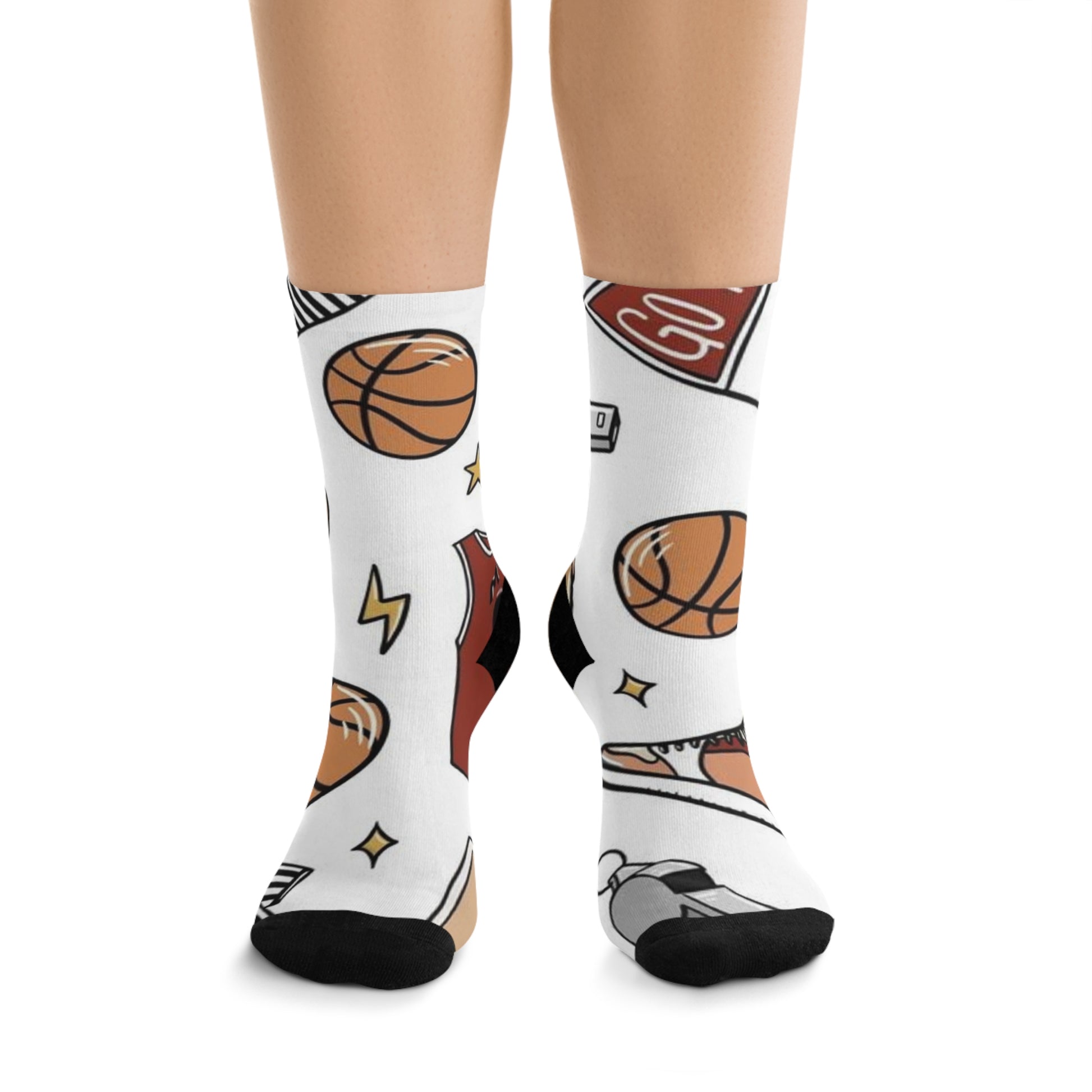 Elevate your game with the Basketball Go White Socks! Designed for players and fans, these socks feature a clean, classic white base with eye-catching basketball motifs that showcase your love for the sport. Whether you’re hitting the court for practice or cheering from the sidelines, these socks combine style and functionality for a winning look.